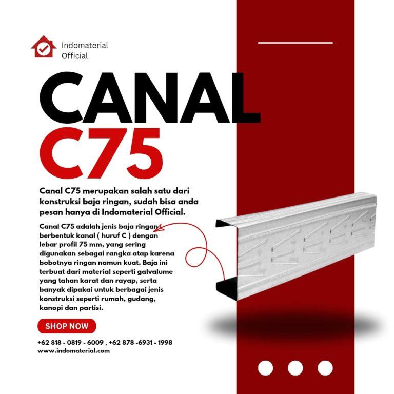 Canal C75 adalah salah satu jenis profil baja ringan yang berbentuk huruf “C” dengan ukuran tinggi 75 mm. Profil ini umum digunakan sebagai elemen struktur rangka bangunan, terutama pada sistem rangka atap, partisi dinding, dan plafon. Disebut Canal karena bentuk penampangnya menyerupai saluran atau kanal yang memiliki sisi terbuka, sedangkan angka “75” menunjukkan tinggi profil dalam milimeter.